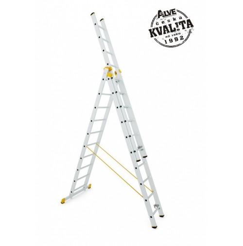Trojdielny univerzálny rebrík Forte, počet priečok 3 x 15, max. výsuvná dĺžka 10,90 m a šírka 484 mm. Rebrík možno použiť ako výsuvný rebrík, štafle alebo predĺžené štafle. Úzky diel sa dá oddeliť a použiť ako samostatný rebrík.