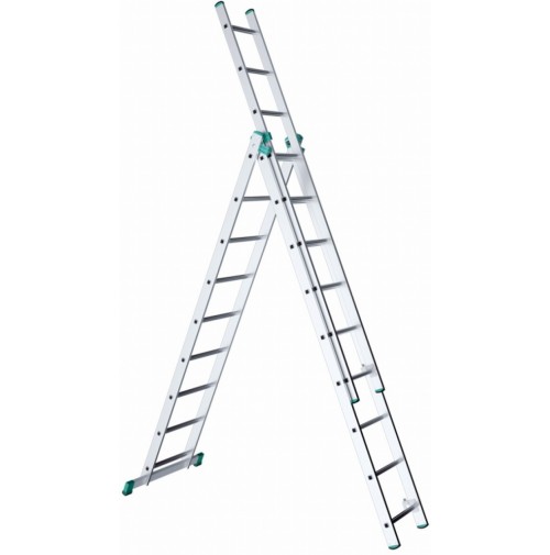 Trojdielny univerzálny rebrík Eurostyl, počet priečok 3 x 7, max. výsuvná dĺžka 3,99 m a šírka 454 mm. Rebrík možno použiť ako výsuvný rebrík, štafle alebo predĺžené štafle. Úzky diel sa dá oddeliť a použiť ako samostatný rebrík.