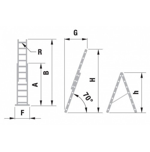 Dvojdielny univerzálny rebrík Forte, počet priečok 2 x 14, max. výsuvná dĺžka 7,22 m a šírka 412 mm. Rebrík možno použiť ako výsuvný rebrík alebo ako štafle.
