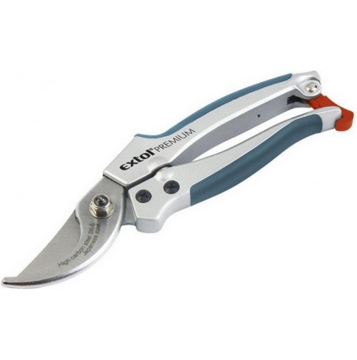 Informační text: ostriez japonské uhlíkové oceli s chromovou antikorozní úpravu, rukoväť z pevného a ľahkého hliníku, krytá mekčenou protiskluzovou TPR gumou, hrdzi odolná pružina
