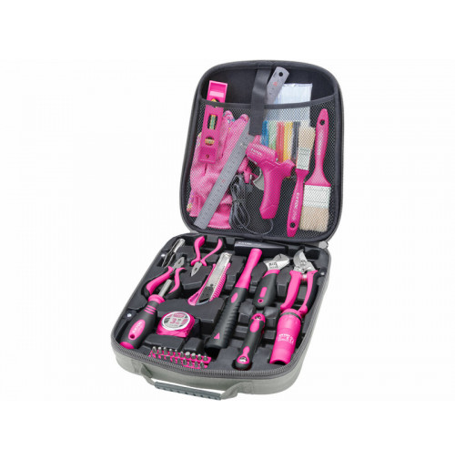 Univerzálna sada navrhnutá pre dievčatá, ženy a dámy, s ktorou Vás nič nezaskočí. Kedykoľvek budete potrebovať niečo premerať, zaskrutkovať, povoliť či utiahnuť, odrezať, vyvážiť, zatĺcť či natrieť, zlepiť, na niečo si posvietiť, alebo si trebárs ustrihnúť ružu v záhrade, táto sada v elegantnom mäkkom kufríku vám bude vždy po ruke - a Vy budete úplne nezávislá!