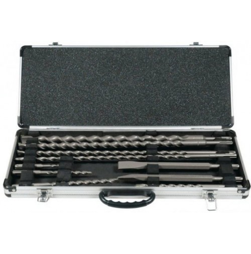 10-Dielna sada vrták 6 x 110 mm vrták 8 x 160 mm vrták 10 x 210 mm vrták 10 x 460 mm vrták 12 x 210 mm vrták 12 x 460 mm vrták 16 x 460 mm vrták 20 x 460 mm sekáč špic 250 mm sekáč plochý 20 x 250 mm