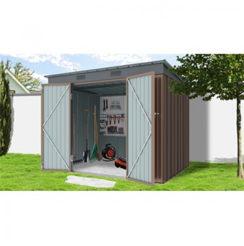 praktický zahradní domek s rovnou pultovou střechou ideální pro uskladnění zahradní techniky a nářadí, grilovacích potřeb, zahradního nábytku, sportovního náčiní, hraček atd. domek je možno postavit svépomocí (doporučujeme 2 osoby), ideálně na pevný povrch (betonová deska, dlažba apod.) žárové zinkování rámu i profilovaných ocelových plechů spolu s kvalitní ochranou pomocí práškového nátěru jsou zárukou dlouhé životnosti a minimálních nároků na údržbu vyztužení střechy pro zvýšenou odolnost vůči větru i sněhu široké dvoudílné křídlové dveře s petlicí je možné bezpečně uzamknout pomocí standardně dodávaného zámku 2 větrací otvory pro dobré proudění vzduchu a ochranu před vlhkostí moderní vzhled a elegantně působící barevná kombinace šedé s tradiční hnědou barvou Případné bezpečnostní pokyny, výstrahy a upozornění jsou součástí návodu k obsluze