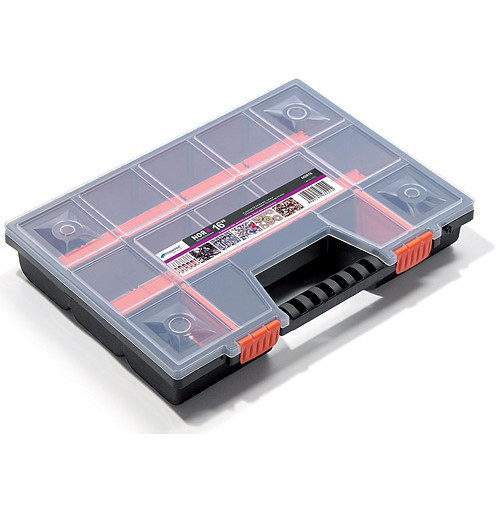 - organizér je vybavený dvoma zámkami, ergonomickým držadlom a priehladným vekom, takže jeho obsah je vždy dobre viditelný