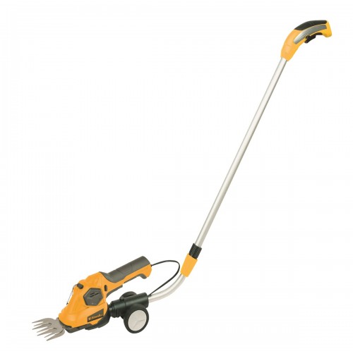 praktické zahradní akumulátorové nůžky na sestříhávání trávníku a tvarování a zastřihávání keřů snadno se dostanete i do míst, kam nezajede sekačka nebo je obtížné použít klasický vyžínač nebo křovinořez snadné zastřihávání keřů a okrasných dřevin pomocí 120 mm dlouhé, standardně dodávané, střihací lišty možnost připojení teleskopické rukojeti s kolečky pro pohodlnou práci ve vzpřímené poloze délka rukojeti nastavitelná v rozmezí 1,08 až 1,38 m možnost ovládání stroje i z teleskopické rukojeti snadné připojení nůžek k teleskopické rukojeti velká kolečka 7 cm pro snadný pojezd jednoduchá a intuitivní výměna lišty na trávu a lišty na keře moderní, silná baterie o vysoké kapacitě 1,5 Ah s elektronicky regulovaným nabíjením pro dlouhou životnost dlouhá výdrž stroje, na jedno nabití až 40 min. indikace stavu nabití pomocí LED diody lehká konstrukce stroje pro práci bez únavy jednoduchá obsluha, bezpečnostní klíč proti nechtěnému použití cizí osobou, dětmi apod.